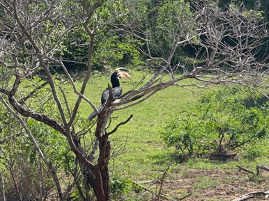 Noch ein Tipp: Unbedingt noch vor der Safari auf die Toilette gehen, denn bis zur Mittagspause gibt es im Park eigentlich keine Gelegenheit dafür. Wir mussten so dringend und hätten es nicht mehr ausgehalten. Unser Guide sagte, er würde seine Lizenz verlieren, wenn er uns im Park aussteigen ließe. Ist ja klarerweise auch ziemlich gefährlich, nachdem es dort Leoparden gibt. Da wir die Weiterfahrt aber kaum hätten genießen können, ließ er sich etwas einfallen. Er schob erst rückwärts in einen dichten Weg hinein, den man von außen kaum einsehen konnte. Dann bewaffnete er sich mit einem großen Schraubenschlüssel und öffnete die Motorhaube. Er sagte, wir sollen schnell hinterm Auto verschwinden und vorsichtig sein. Sollte jemand kommen, würde er sagen, dass wir gerade eine Autopanne hätten. Wir waren sehr erleichtert, auch wenn es ein eigenartiges Gefühl war so in der Hocke auf jedes Rascheln im Busch zu achten. Es ging aber alles gut und wir konnten unsere Fahrt unbeschadet fortsetzen.